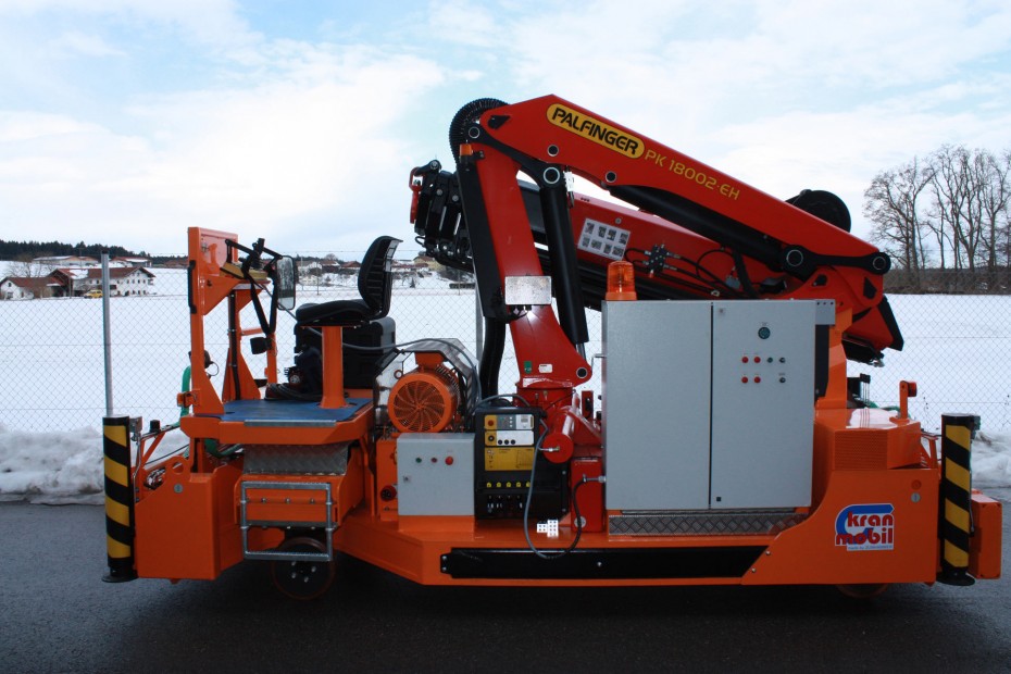 Das kran mobil PK18 vereinfacht, wie der PK34, Arbeitsabläufe in Ihrer Produktions-, Fertigungs- oder Messehalle. Das kran mobil fährt selbstständig in die Halle und kann mit seiner geringen Größe und seiner Vierrad-Lenkung auch sehr enge Stellen und Wege befahren. Das Zunhammer kran mobil ist im Betrieb jederzeit verfügbar und einsatzfähig und hebt bei Aufbau, Montage und Wartung. Im Vergleich zum kran mobil PK34 hat das Modell PK18 ein höheres Eigengewicht und benötigt eine größere Fläche für die Kranabstützung. Die Kranabstützung ist aber schwenkbar und, wie auch beim kran mobil PK34, teleskopierbar.